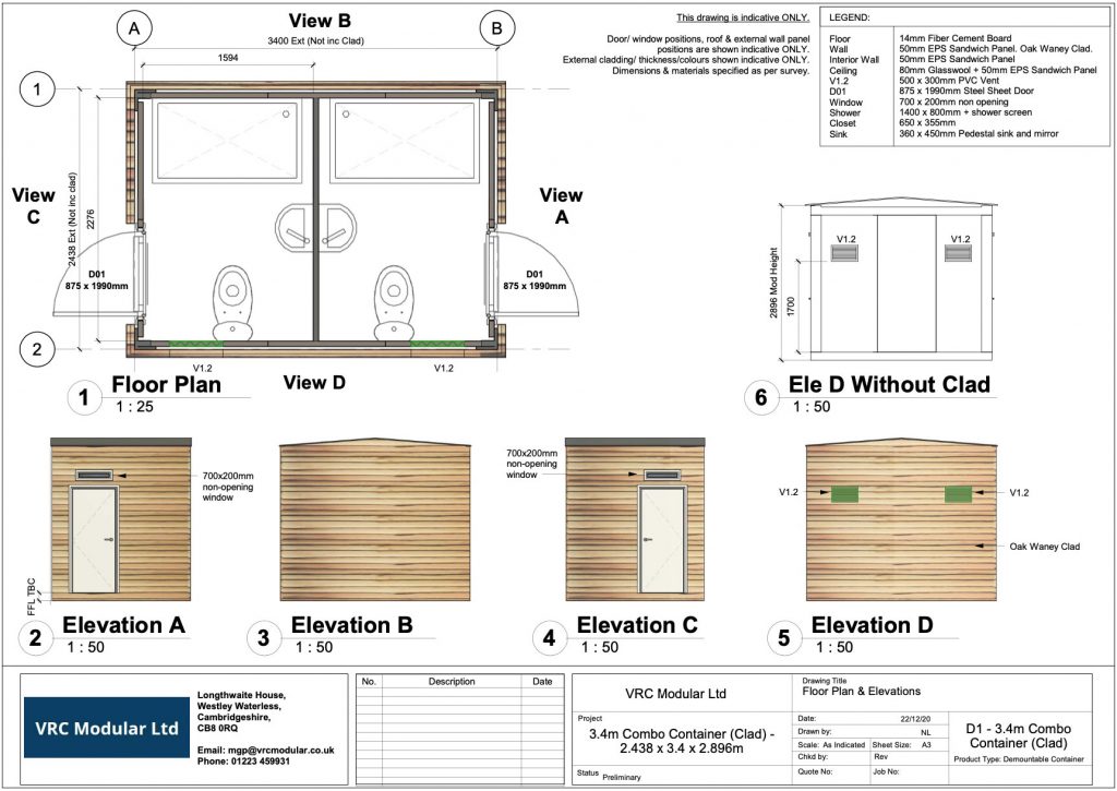 Based on our rolled steel frame with galvanised 50mm insulation panels these twin combination modules are larger versions of our Superpitch modules. Each unit has its own shower with 1,000mm wet room shower panel, toilet and sink. The shower is a Triton electric. Altro Pisces welded flooring is laid with 10mm upstands. The internal walls are clad in 5mm pvc wall panels for easy clean. Cladding in waney Red Cedar or Larch and having a pitched roof, this 3m high module is ideal sell for pitch upgrades. Extras available include lpg hot water, additional extract fans, blade hand dryers and personalised shower wall picture panels. Priced at £10,500 ex Cambridgeshire compound plus VAT and delivery.