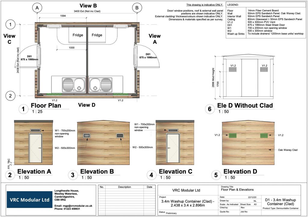 The 3.5m long and 3m high modules are fitted with a premium Liebherr under counter fridge (can be upgraded to tower fridge) with a stainless steel commercial grade sink and hot water tank. Flooring is Altro Pisces welded flooring with 100mm upstand. Clad internally in wipe clean 5mm pvc wall covering and waney Red Cedar or Larch, this is going to be a great addition to any site. Priced at £9,965 ex Cambridgeshire compound plus VAT and delivery.